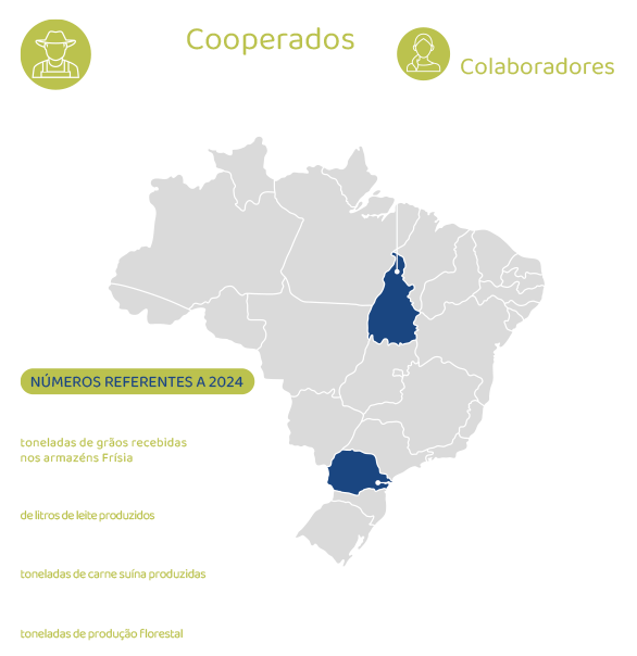 Com sede em Carambeí (PR), principal polo de suas operações, a Cooperativa Frísia conta com 938 cooperados no estado do Paraná. A partir de 2016, iniciou-se um processo de expansão ao estado do Tocantins, consolidando, até o final de 2024, um total de 139 cooperados nessa nova frente de atuação.